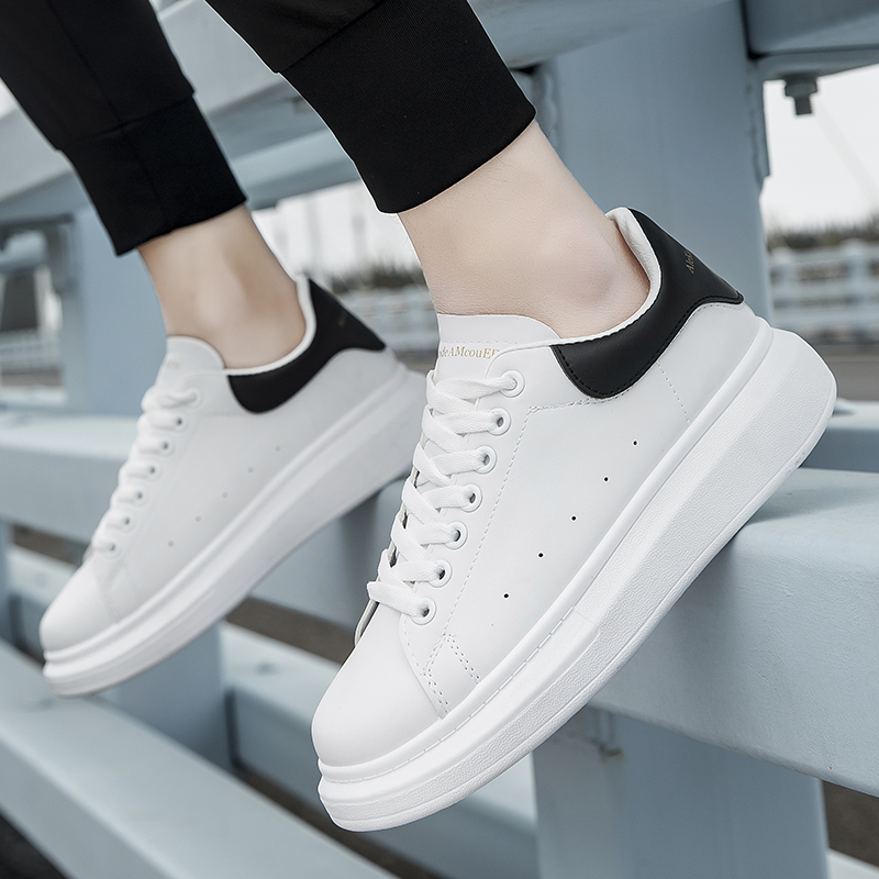 Cheap Simple Classic white shoes couple style low top thick sole height increasing male youth student shoes(J10)
