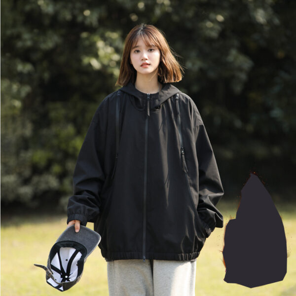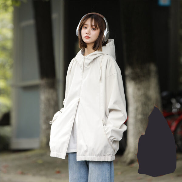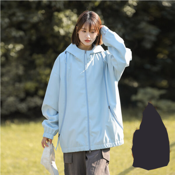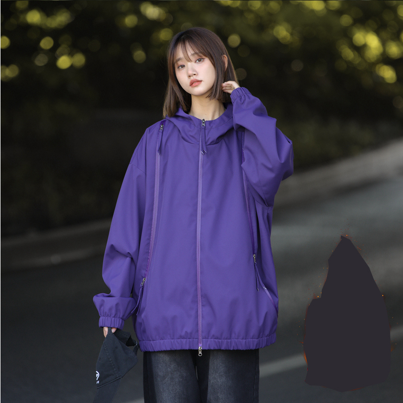 Be the first to review “Ladies’ Spring and Autumn Loose Zipper Pocket Solid Color Hooded Waterproof Jacket(AJ208)” Cancel reply