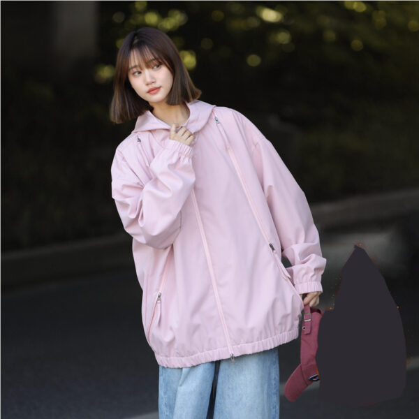 Ladies’ Spring and Autumn Loose Zipper Pocket Solid Color Hooded Waterproof Jacket(AJ208)