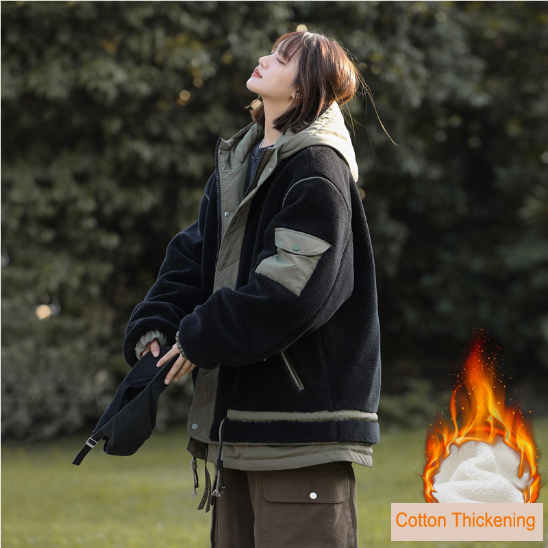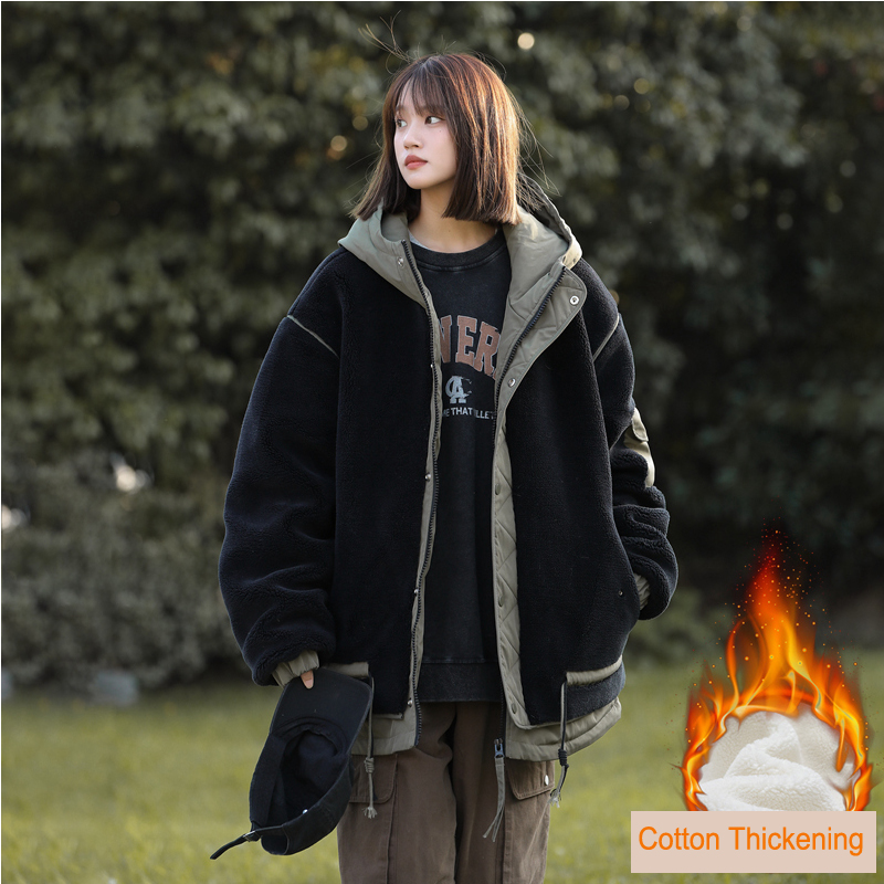 Lamb wool cotton coat for women in winter add velvet thickening cotton coat high-quality cotton outdoor wear(M21_F)