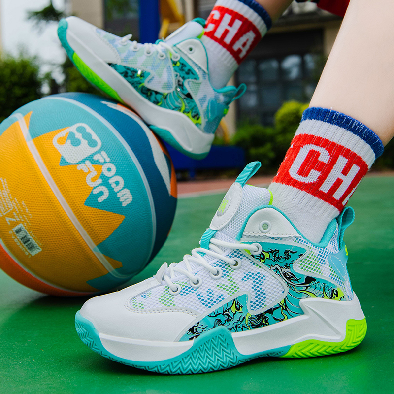 Summer new mesh parent-child basketball shoes for children ultra fiber breathable anti slip high school sports shoes(8036)