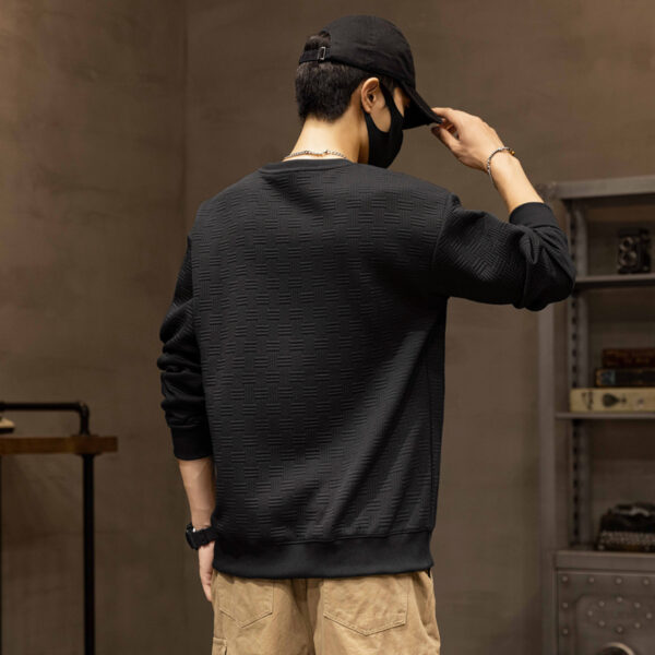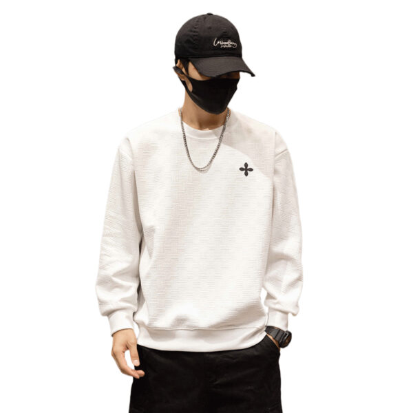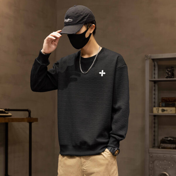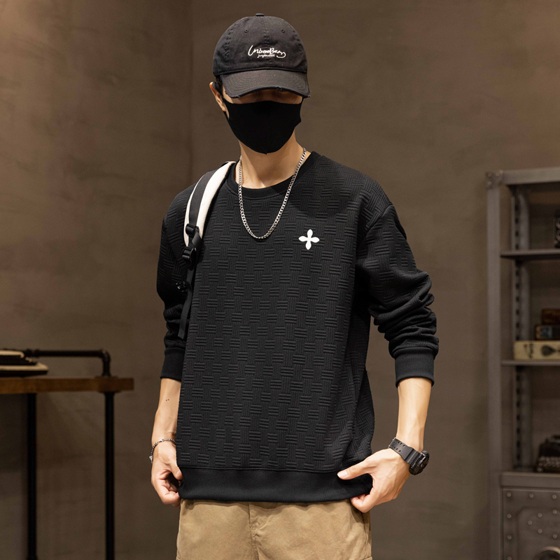 Men’s fashion casual clothe autumn new loose fashion trend long-sleeved round collar with velvet thickened bottom coat(8504)